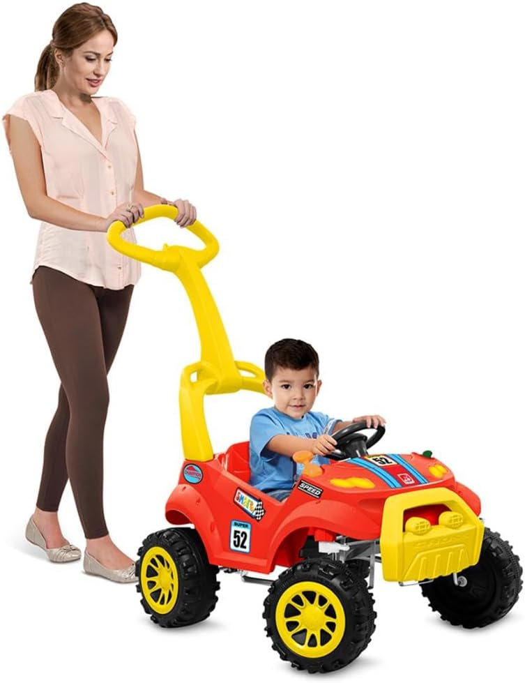 O Carrinho Smart Passeio Bandeirante possui um design super moderno e exclusivo, podendo ser utilizados em 2 funções, uma delas chamada de Passeio, é a possibilidade do adulto poder auxiliar o passeio, basta inserir a haste no veículo e controlar ou conter o carrinho, porém a criança escolhe a direção através do volante. A outra função chamada de Pedal a criança tem acesso aos pedais e utiliza o brinquedo da forma tradicional. O piso retrátil altera as funções entre passeio e pedal.